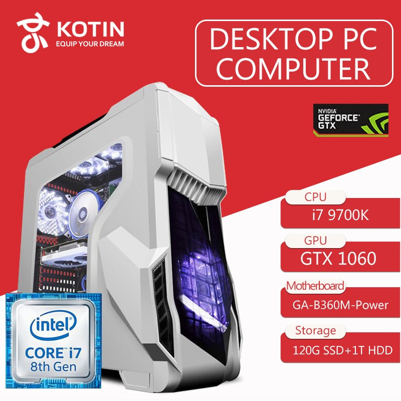 KOTIN Z2 Gaming PC Intel I7 9700K GTX1060 6GB GPU 120GB SSD 1TB HDD Gaming Desktop ASUS B360M 8GB RAM Computer PUBG 4 fans