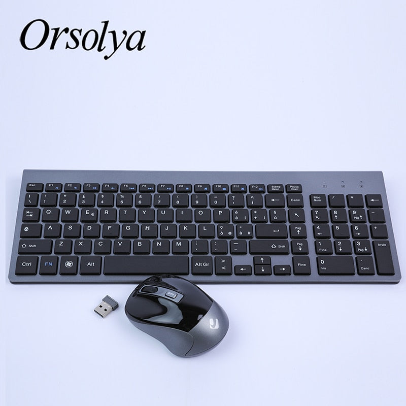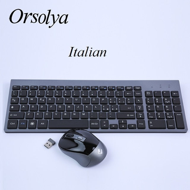 2.4G Wireless Keyboard and Mouse Combo,Italian,German,French Orsolya Compact Silent Full-size Keyboard For PC Computer Laptop