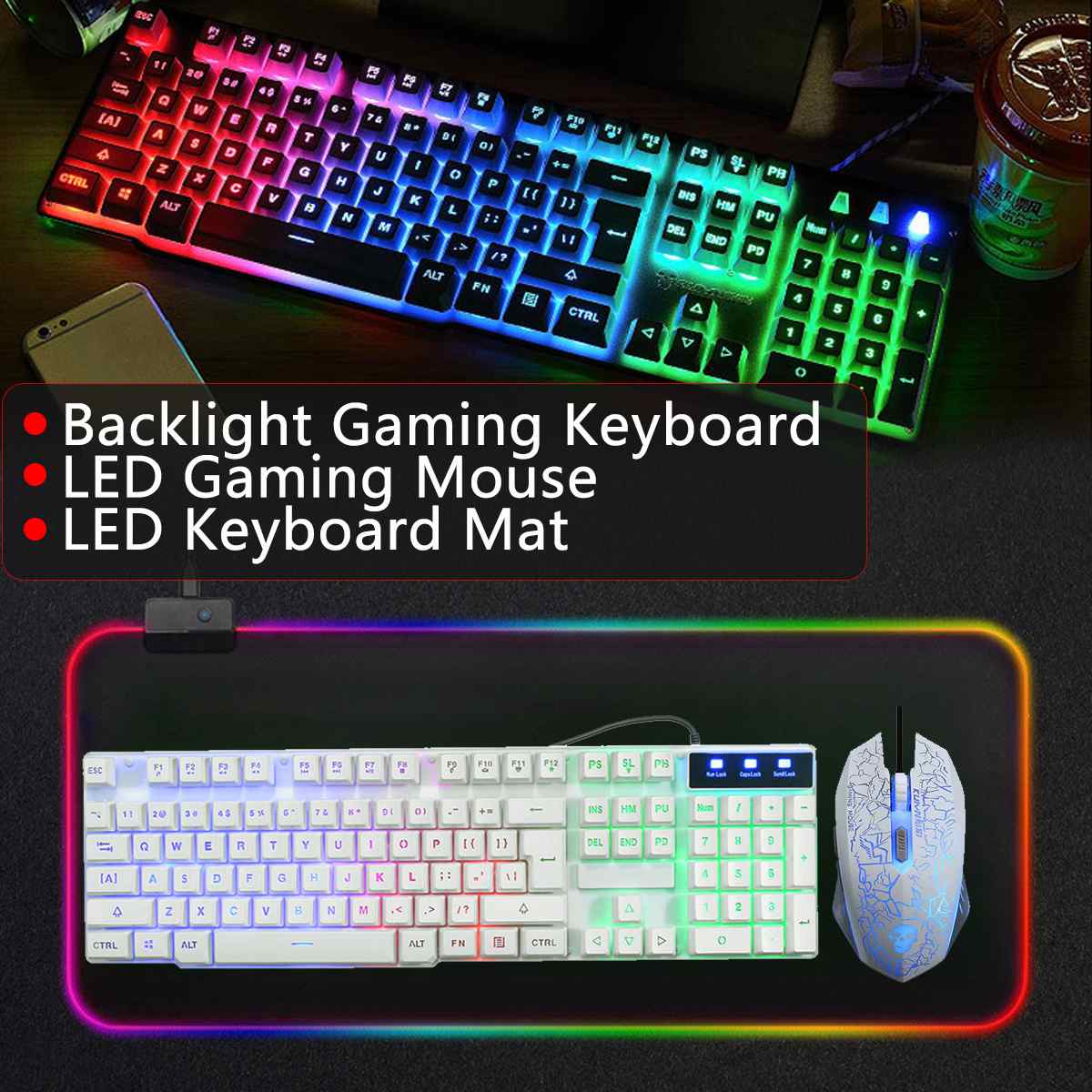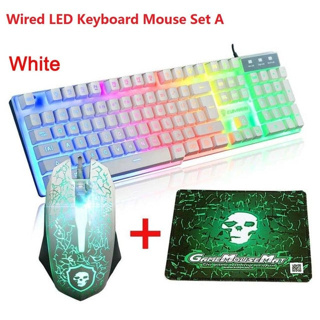 Wired /Wireless LED Keyboard Mouse Set Rainbow Backlight USB Luminous Mute Ergonomic Gaming Keyboard Mouse Pad Kit for PC Gamer