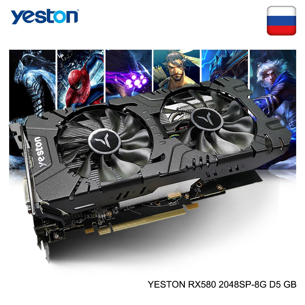 Yeston Radeon RX 580 GPU 8GB GDDR5 256bit Gaming Desktop computer PC Video Graphics Cards support DVI-D/HDMI/DP PCI-E X16 3.0