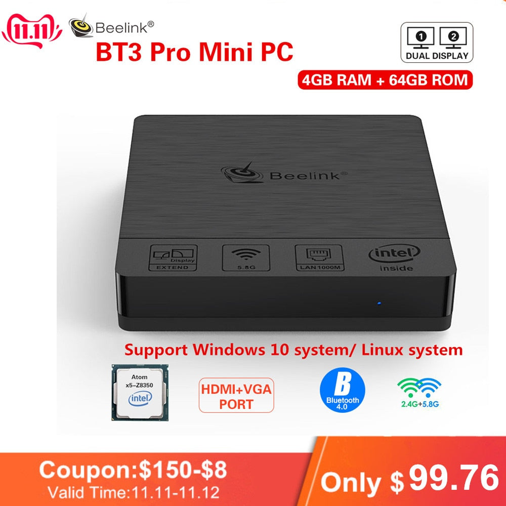 Beelink BT3 Pro Mini PC Win 10 Intel Atom x5-Z8350 4GB DDR3 64GB 2.4+5.8GHz WiFi Bluetooth 4.0 Ethernet 1000Mbps