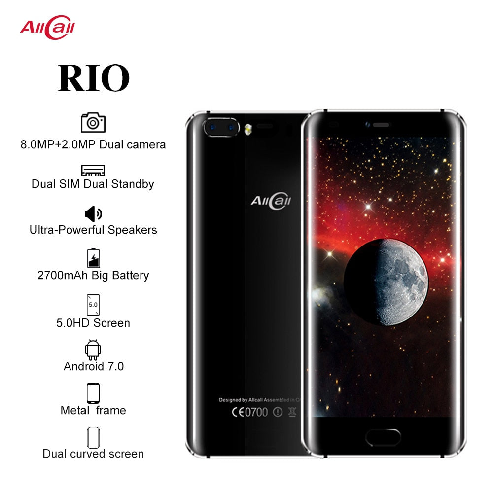 Original Allcall Rio 5.0 Inch IPS Rear Cams Android 7.0 Smartphone MTK6580A Quad Core 1GB RAM 16GB ROM 8.0MP OTG 3G Mobile Phone