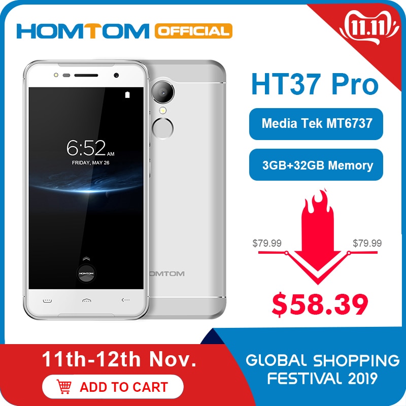 Original version HOMTOM HT37 Pro 4G Smartphone MTK6737 5.0 Inch HD Android 7.0 3GB+32GB 13MP 3000mAh Fingerprint ID Mobile Phone
